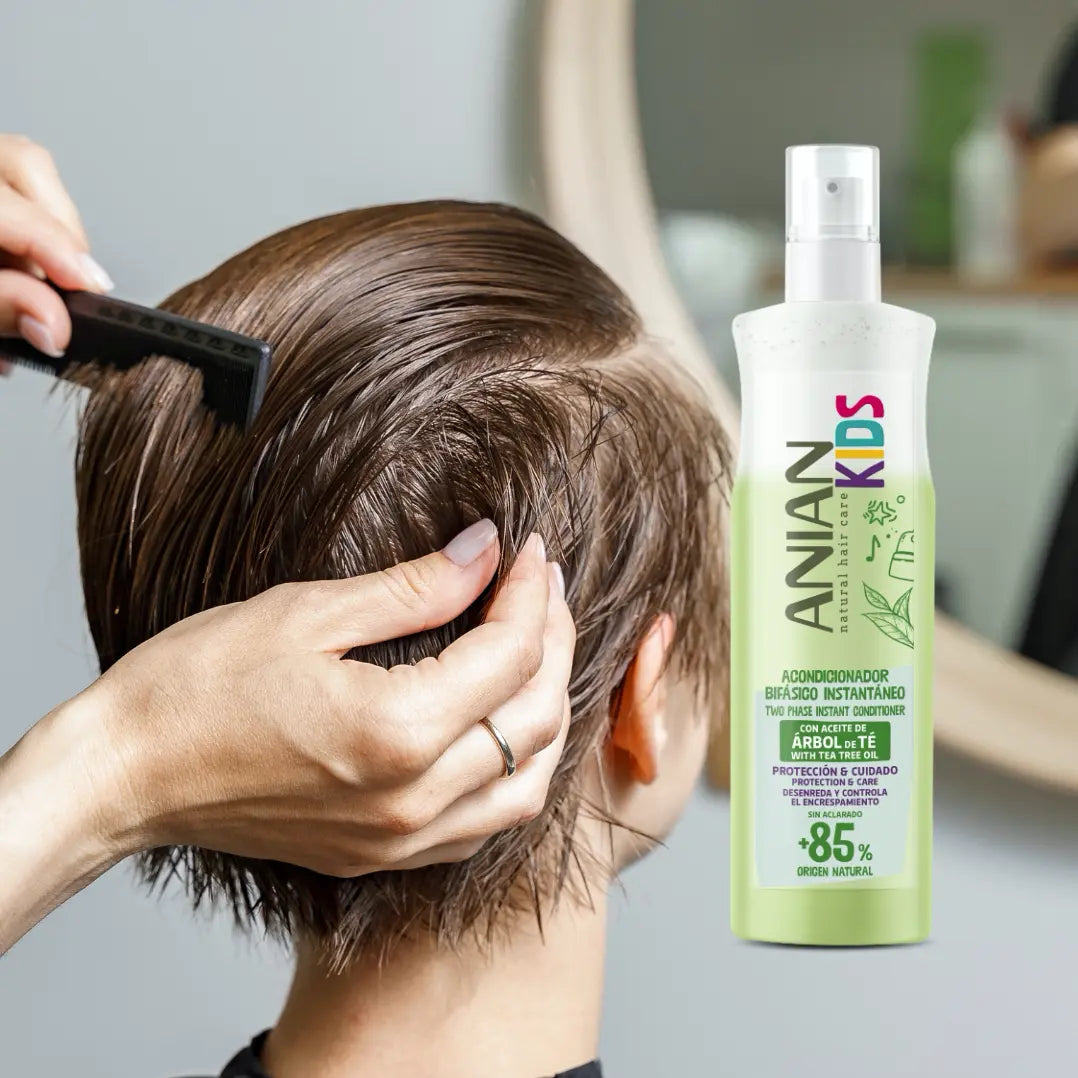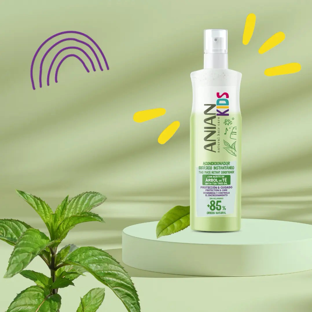 ჩაის ხის ორფაზიანი, ჩამობანის გარეშე კონდიციონერი შლის და აკონტროლებს ბავშვების თმის ფრიზს (დაუმორჩილებლობას).